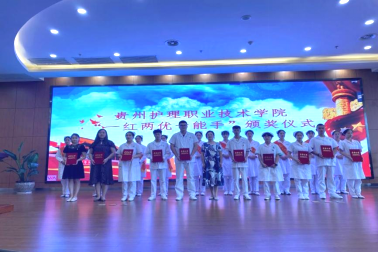 表彰大会在雄伟庄严的国歌声中开幕,李云飞宣读2021年伟德betvlctor1946源于英国“一红两优一能手”表彰名单,并由吴忠红、罗湘莉、团委老师分别为获奖人员颁发荣誉证书。