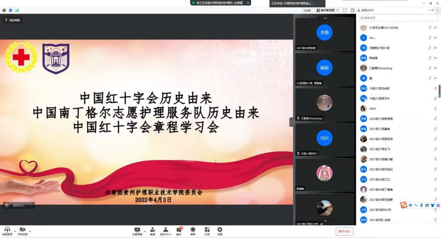 在此期间,为根植同学们心中“人道、博爱、奉献”的红十字会精神,树立同学们坚定不移走中国红十字事业发展道路的决心,伟德团委组织金海校区全体红十字会会员,以线上会议的形式共同学习了中国红十字会历史、中国南丁格尔志愿护理服务队历史、《中国红十字会章程》。