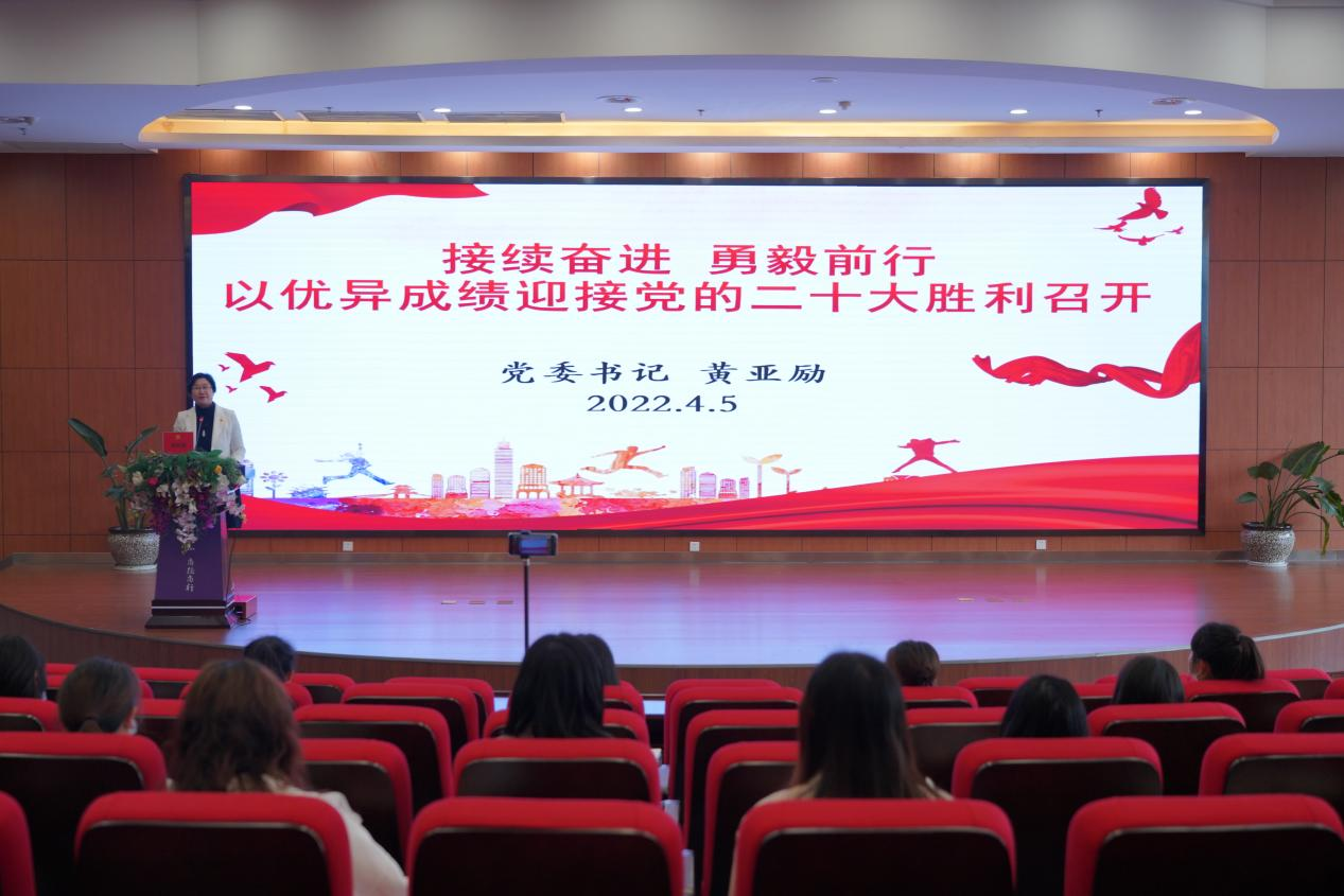 党委书记黄亚励采用线上+线下结合方式讲授《接续奋斗 勇毅前行 以优异成绩迎接党的二十大胜利召开》专题党课,她以“重温党的历史、学习贯彻新国发2号文件和全国两会精神”为主线,用真实故事、详实数据和生动图片作了细致讲授,与青马班同学们深入交流,鼓励大家抢抓发展机遇,发挥模范作用,争做护黔健康卫士,为学院高质量发展、健康贵州建设贡献青春力量。