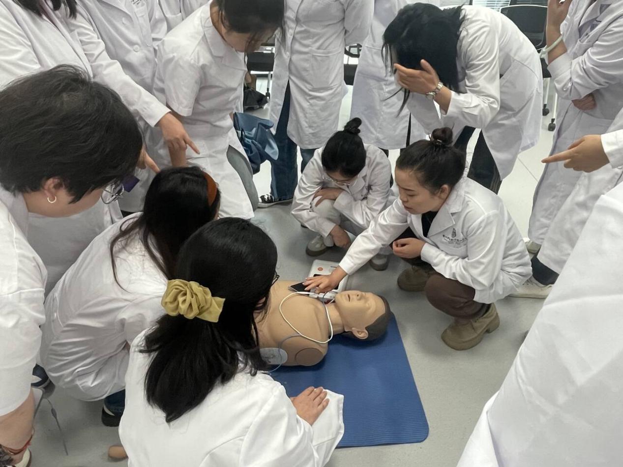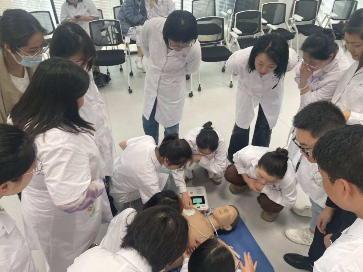 培训现场,参训教师积极参与实践操作,通过模拟演练,熟练掌握了AED的使用方法和急救技巧。同时,急危重症教学团队还针对教师们在操作中遇到的问题进行了耐心解答,确保每位教师都能熟练掌握AED操作技能。