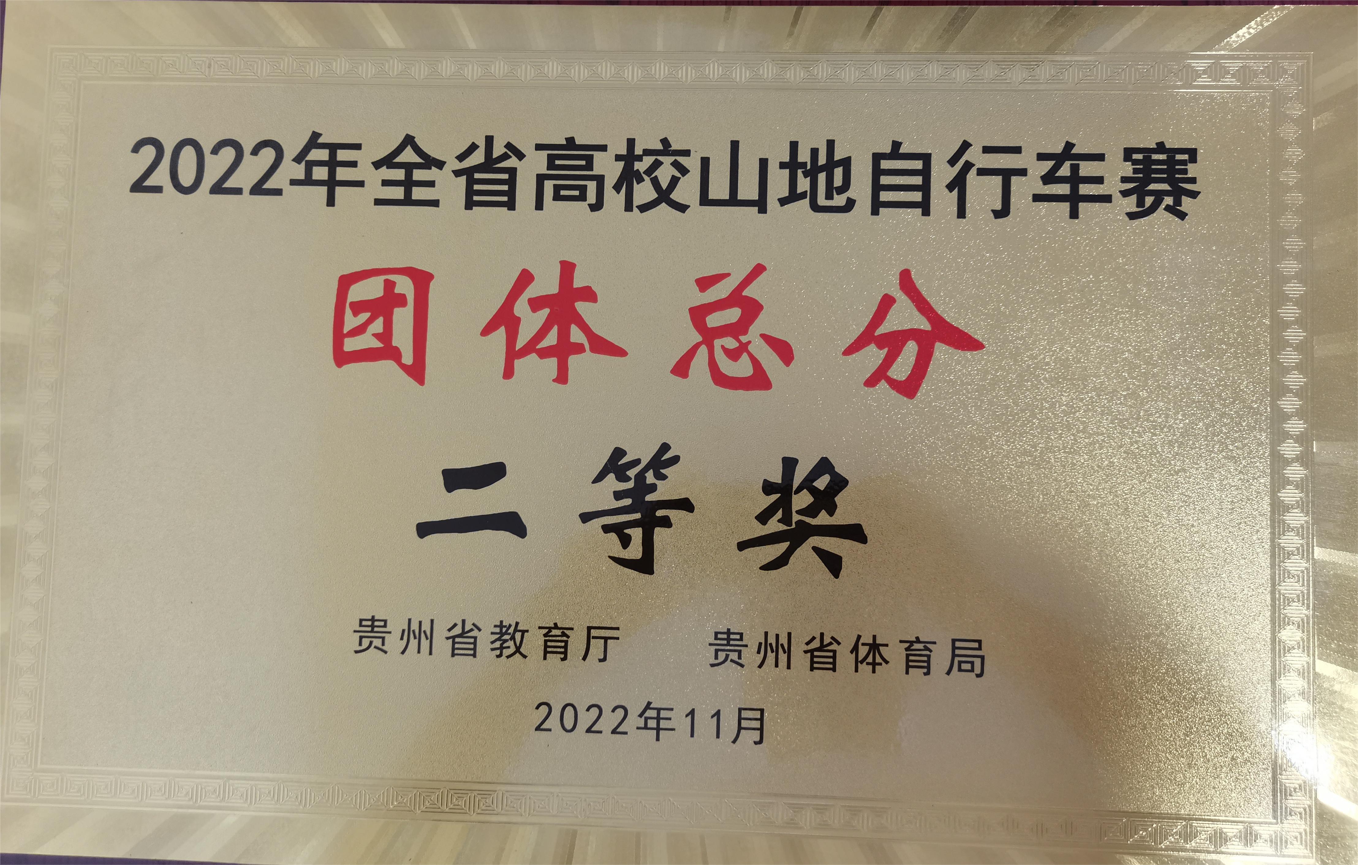 2022年全省高校山地自行车赛团体总分二等奖