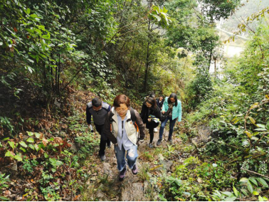 上午十一时,在讲解员的带领下,伟德全体人员首先冒雨进行重走“艰辛路”的实地体验。这条出山小路是当年麻怀村人出山必经和唯一的一条路,山路蜿蜒崎岖、湿滑陡峭、狭窄危险,稍不注意就会摔倒或跌下山坡。山路不算太远,却举步维艰,更别说孩子们上学或村民们担着重物每日在此往返,这让在场的人深刻感受到麻怀人长期以来生活条件的艰辛和困苦。
