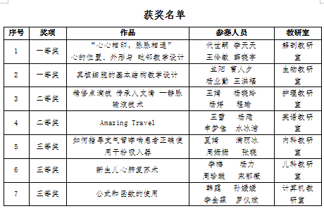 三等奖教师团队(内科教研室、儿科教研室、计算机教研室)