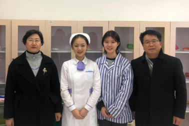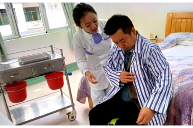 学院副院长潘忠伦看望学生时扮演标准化病人关心鼓励学生