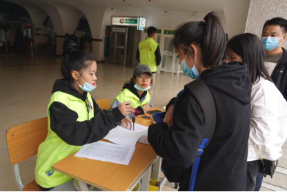 熙熙攘攘的校园里,随处可见一抹抹鲜艳的色彩,或红、或橙、或黄、或蓝、或绿……五彩斑斓,引人注目。他们是来自学院团总支、学生会和青年志愿者协会的同学们,作为新生的学长学姐,更作为一名志愿者,在此次迎新日中积极主动地为新生提供帮助,介绍学院基本情况,指导办理入学手续,协助搬运行李,指引前往宿舍等。