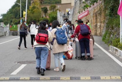 秋日和煦的暖阳下,学子们步履轻快、神采奕奕,尽管戴着口罩,也还是能看见他们笑靥如花。他们三俩成群,身背重重的行囊,嬉笑打闹着,互帮互助着,阔步走进校园,至此开始迎接全新的大学生活。