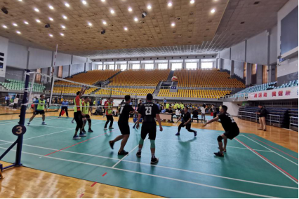 男子气排球比赛采取三局两胜制,18个参赛队被分为两个组,采用循环赛形式进行角逐。