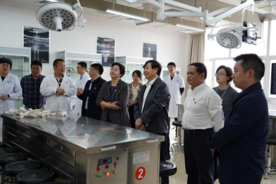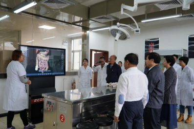 王金奇组长一行首先走访了学院专业实训中心和基础医学实训中心,考察了生命科学馆和示范校建设成果展示厅,详细了解学院疫情防控、教育教学、新校区建设、金海校区建设项目收尾工作等情况。