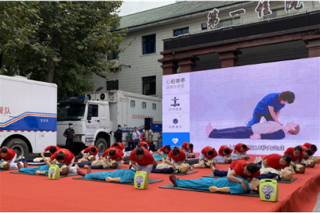本次活动由贵州医科大学附属医院副院长楚兰主持,院长李海洋致辞,省卫生健康委二级巡视员陈中国宣布活动开始。活动中,贵州医科大学附属医院急诊科副主任夏飞向大家进行了心肺复苏术(CPR)演示解说,20名志愿者在解说员指令下,在台上整齐划一地为大家进行CPR标准操作演示。国家紧急医学救援队队员还对防护服穿脱操作、海姆立克急救法、止血包扎、外科洗手标准等急救知识技能操作进行了演示并且耐心细致地指导参观者进行练习,向公众传授急救方法和技术。