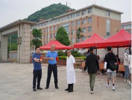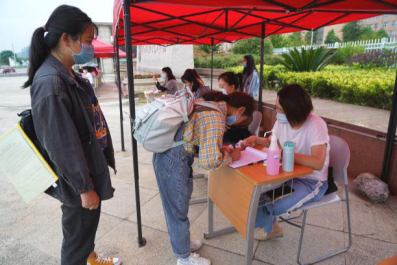5月24日上午,学院领导一行来到学院大门外学生报到现场,仔细查看了学生报到流程及体温检测点的运作情况,嘱咐工作人员,一定要严格把好入校第一道关,严格执行测温、查验健康码、核对身份和消毒等程序,维持好入校秩序。