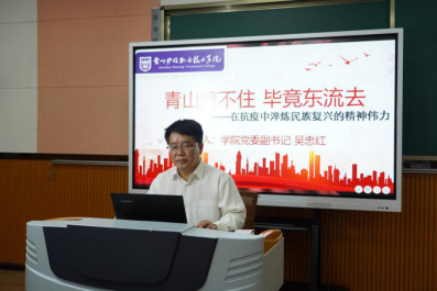 下午,学院党委副书记吴忠红给全体2018级高职返校学生讲授题为《青山遮不住 毕竟东流去——在抗疫中淬炼民族复兴的精神伟力》的复学第一课。
