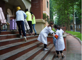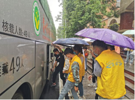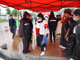 雨中忙碌的“黄绿紫”——学生志愿者