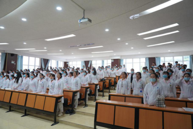 5月25日,学院为第三批返校高职学生举行了入学教育。上午10点10分,因天气原因,全体学生在各班教室参加了升旗仪式。