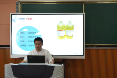 实用的防疫实操课程也是复学复课后帮助同学们做好疫情防控的重要内容。学院医务室许立老师为同学介绍疫情科普知识,指导同学们在教室、寝室、食堂等重点区域如何做好自我防护及如何正确使用各类消毒用品等。丰富实用的知识技能,为同学们提高自我防疫意识和能力、安全健康学习生活提供了更多保障。