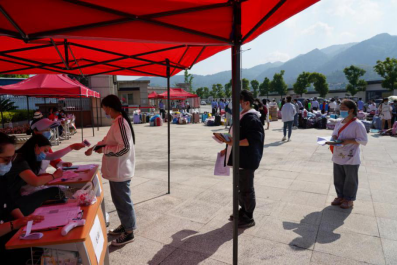 同学们按照志愿服务老师的指引,间隔有序地排队报到。各班班主任、辅导员严格按照疫情防控要求,对学生测量体温、登记健康信息等。
