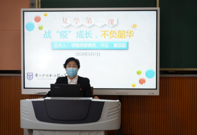 黄亚励书记讲授题为《战“疫”成长,不负韶华》的“复学第一课”,希望同学们在战“疫”中坚定制度自信,厚植爱国主义情怀,致敬抗“疫”英雄勇士。继续毫不松懈,成为疫情防控的“参与人”;怀揣梦想,成为奋勇向前的“追梦人”;转危为机,成为把握机遇的“筑梦人”。