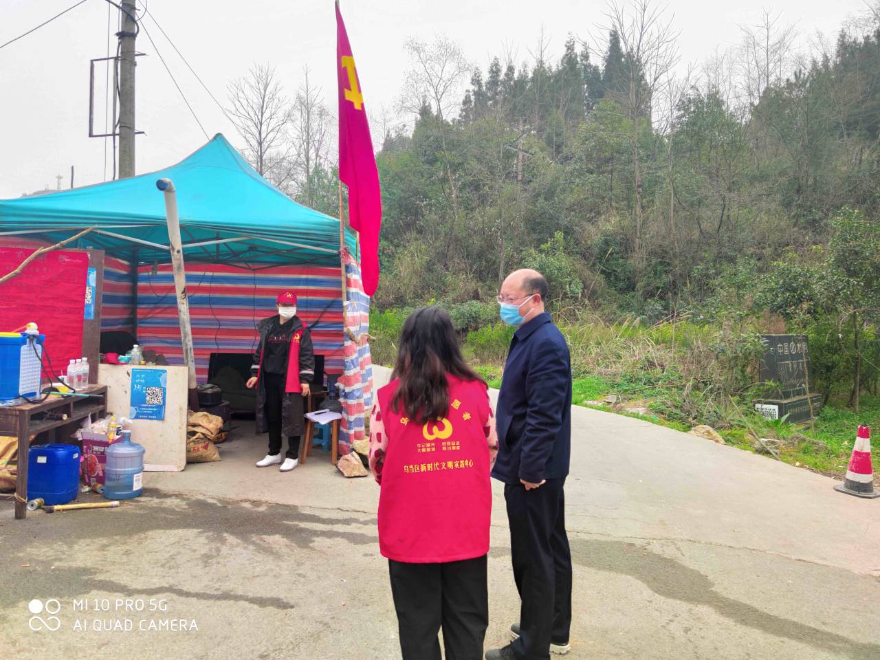 在贵阳市乌当区永乐乡干井村疫情防控卡点,党委副书记吴忠红与学院2018级高职7班陈兰香同学亲切交谈,仔细了解她在村里的工作情况和个人防护情况,并对学生志愿者在危难关头挺身而出的担当作为表示赞扬和鼓励,肯定了同学们以实际行动践行社会主义核心价值观和彰显伟德“医者仁心,尚德尚行”校训精神。干井村村支部书记朱贤春、村主任陈兰富介绍说:自疫情发生以来,防控任务艰巨繁重,村里多亏有陈兰香同学这样具备一定专业素质又热心服务的同学参与进来,在疫情防控中成为了大家的防疫“小”老师,也带动了村里的大学生共同加入到抗疫工作中来。两位村干部还赞扬学院教书育人工作的成效,学院不仅传授知识,还培养了学生有责任担当的好品行,在关键时刻发挥了作用。陈兰香同学表示:危难时刻,休戚与共;疫情面前,责任有我。作为贵州护理职业技术学院的一名学生,作为一名干井村村民,我们有义务有责任为国家分忧、为村民解难。自己虽然不能像白衣战士们一样冲锋在救治患者的一线,但很乐于在守护家乡、做好防控这条战线上尽到一份绵薄之力。只要我们人人都尽力,就一定能早日驱散病毒的阴霾,迎接春天的到来。吴书记对志愿者提出殷切期望:一是行百里者半九十,越到接近抗疫胜利越要保持高度的警惕,在做好防控疫情工作的同时,要注意自身安全,做好个人防护;二是有什么困难及时向学院反映,学院会竭尽全力解决;三是要继续发扬不怕吃苦、勇于担当、甘于奉献的精神,为坚决打赢这场疫情防控阻击战贡献自己的力量;四是在非常时期配合学院做好开学前的准备,以健康的身体和昂扬的精神状态把耽搁的学习时间夺回来。