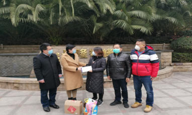 同日,学院领导一行还看望慰问了郭兴萍同志,对她的无私奉献同样表达了衷心感谢之情,勉励她要继续对战斗在一线的家属给予更多精神上的关爱和支持,有困难及时向组织反映,共同照顾好家庭,确保家属没有后顾之忧。郭兴萍同志的丈夫宋大龙同志是贵州省人民医院的医生,目前在盘州市人民医院挂职。1月25日,他放弃和家人团聚的机会,返回盘州市人民医院参与抗疫至今,负责预检分诊、发热门诊“新冠疑似病例”筛查,参加隔离病区患者专家组会诊等工作。