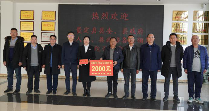 新春佳节来临之际,1月22日,贵定县县委副书记刘亚文、县政府副县长刘伟、县委组织部长敬鹏、县人大常委会副主任封运美、县政协副书记李维庆一行到我院金海校区开展新春慰问活动,向坚守岗位的学院教职工致以新春的问候和祝福,并送上慰问金。学院党委书记黄亚励、党委副书记、院长李俊华、党委副书记吴忠红、副院长徐晓筑、副院长潘忠伦及党委办公室、学院办公室、学生工作处、后勤处、保卫处等部门临时负责人参加了慰问活动