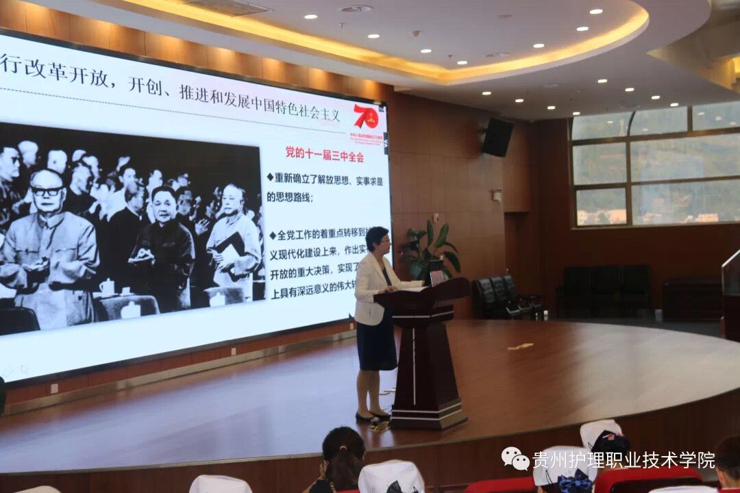 9月27日下午,学院党委书记黄亚励在金海校区学术交流中心做“奋进70年 、壮丽新时代”形势政策讲座。金海校区中高职共有338名学生现场聆听了讲座。