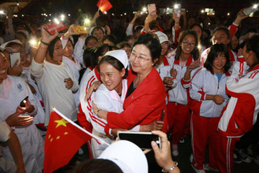 同学们激动的和书记院长紧紧的拥抱,书记院长以更热烈的拥抱和鼓励回应。