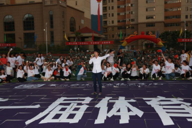 夜幕降临,操场边学生宿舍楼窗户的灯光次第亮起,和同学们手中手机电筒组成的星光交相辉映,熠熠生辉。现场气氛一次次达到高潮,同学们的欢呼声响成一片。一首首赞歌展示着新中国青年学子们的蓬勃朝气和无尽生机。