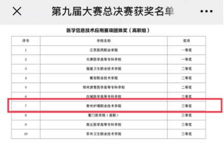 最终,伟德取得“医学信息技术应用赛项团体奖(高职组)”三等奖,三名学生分别获得个人二等奖,毛锐老师、王小娟老师、刘颜老师获得优秀指导老师。