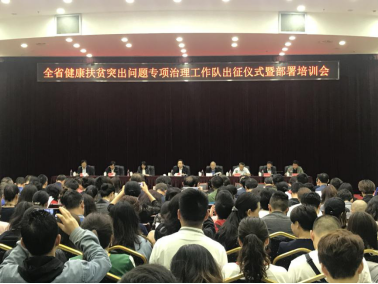 5月15日上午,全省健康扶贫突出问题专项治理工作队出征仪式暨部署培训会在贵阳举行。省卫生健康委党组书记、主任李奇勇出席会议并讲话。李奇勇书记在会上指出,全省卫生健康系统要认真落实省委、省政府解决“两不愁三保障”突出问题的安排部署,围绕全省卫生健康大调研查找突出问题,力争把健康扶贫硬件任务全面完成,确保今年内完成健康扶贫所有任务,为全省脱贫攻坚贡献力量。