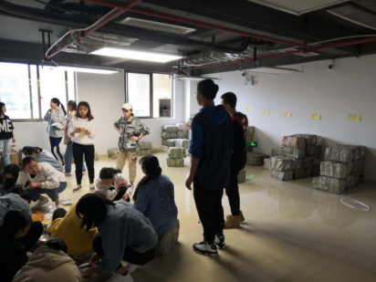 伟德学生志愿者团队进行分类贴标