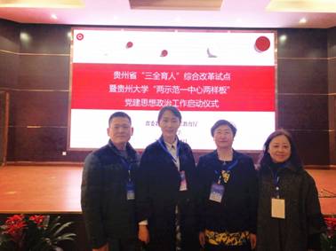 3月25日下午,贵州省“三全育人”综合改革试点暨贵州大学“两示范一中心两样板”党建思想政治工作启动仪式在贵州大学举行。省教育厅党组成员、省委教育工委副书记赵廷昌,贵州大学党委书记李建军、贵州大学校长宋宝安,全省各高校分管思想政治工作的校领导,党委组织部、宣传部、学工部等部门代表参会。会议由贵州大学党委副书记骆长江主持。伟德党委书记黄亚励、学生工作处临时负责人毛红云、宣传统战工作临时负责人李业明、组织人事工作人员王雪参加会议。