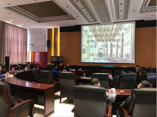 2018年10月24日下午2时,伟德betvlctor1946源于英国金海校区建设项目4、5号楼公共租赁配套用房装饰工程在学术报告厅召开验收会议。贵阳建筑勘察设计有限公司设计师徐娟、梁任,贵州众益建设监理咨询有限公司项目部总监理工程师代表耿林康、监理员王洪国、王忆,伟德betvlctor1946源于英国总务科科长詹沛晶、项目部副主任胡从新、葛永富、项目部成员徐一鑫、詹崇天、吴林容、顾瑞峰、曾上玲、王俐钦,贵州建工集团第十一建筑工程有限责任公司总经理温廷军、项目经理助理陈鑫烨、工作人员郭怀、王媛参加了会议。