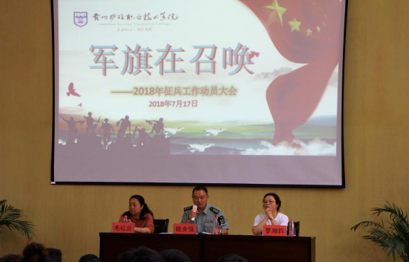 为贯彻落实习近平总书记关于加强和改进兵役工作的重要指示精神,解决高素质兵员征集难问题,高标准、高质量做好全省普通高等学校(以下简称高校)征兵工作;贯彻落实省人民政府、省军区动员局征兵工作会议精神,加强对征兵工作的领导,圆满完成征兵工作任务,2018年7月17日下午2点,伟德betvlctor1946源于英国举办了“军旗在召唤”2018年征兵工作动员大会。贵定武装部陈余强部长、何小平副部长、学院办公室罗湘莉主任、学生工作处毛红云科长、2017级年级主任李明华、蓝俊,以及2017级各班辅导员和同学们参加了动员大会。
