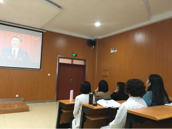 在校阶梯教室四,学校领导和部分教职工代表认真观看开幕式盛况。大家纷纷表示,党的十九大是全党全国各族人民政治生活中的盛事,及时学习和准确把握党的十九大报告的新内涵、新任务、新举措、新要求,有利于深刻领会党的十九大的精神实质,更好地投身于学习和工作,为学校的建设和发展做出应有的贡献。