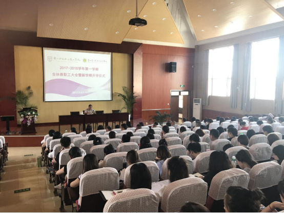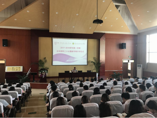 2017年8月15日,伟德在知行楼召开新学期全体教职工工作会议,通报假期中各项工作进度,明确新学期的工作要求。校领导班子及全体中层干部出席了会议。
