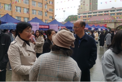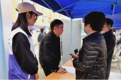 开幕式结束后,40家单位齐聚畅飞广场,招聘会正式开始。尽管天有晴雨,学生应聘的热情却风雨无阻。各单位展位前人头攒动,问答登记,徐疾有序。学院领导前往现场视察,关心学生就业情况,了解行业发展情况。招生就业处、后勤人员、学生志愿者在现场全力做好会务工作,保障招聘会顺利有序进行。