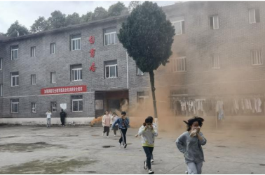宣讲完毕后现场演练正式开始。自尊居警报随即响起,烟雾瞬间在楼道内弥漫开来。仅用时2分钟,在疏散救援组的指挥下,被困的90名学生用湿毛巾捂住口鼻有序撤离了“火灾”现场,到达指定疏散场所。经清查,所有人员已经全部撤离,有2名学生出现头晕的不适症状,总指挥立即下达命令,让疏散救援组的人员对学生进行救治以及心理疏导。