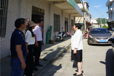 黄亚励一行在哪嗙社区调研,听取罗心红(左三)的介绍