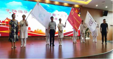 吴忠红、罗湘莉及李云飞分别为三支社会实践服务队授旗,并由团委王睿锐老师带领全体志愿者宣誓。
