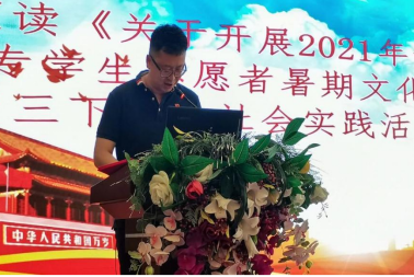 李云飞宣读了《关于开展2021年贵州省大中专学生志愿者暑期文化科技卫生“三下乡”社会实践活动的通知》,并介绍了此次暑期“三下乡”社会实践活动的主题、内容和要求。