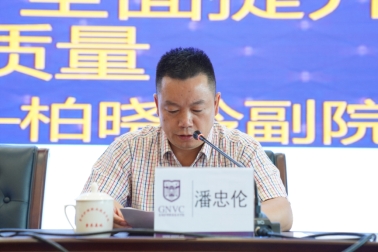 潘忠伦代党委委员、副院长柏晓玲就其分管部门教务处、教学质量监控与评估办公室、图书馆等工作情况进行总结和部署。讲话指出,下半年一是要在教育教学方面重点加强建立健全教育教学体系,完善教育教学系统;严格教学管理,继续加强教学质量监控;加强师资培训,不断提升教师综合素养;完善课程教学大纲,细化人才培养方案。二是要高质量完成学院双合格评估工作、中高职教育质量年报,推进教学质量评价与诊改保障体系建设。三是有计划加强专业建设、精品课程建设,进一步强化系部在专业建设中的主体作用。四是加强实习基地建设,不断拓宽校企合作渠道,不断完善实习条件。五是快速有序推进图书馆建设。