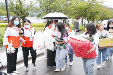 校园内却有热心的党员先锋队、教职工、迎新志愿者