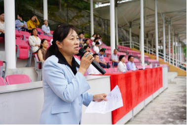 黄亚励代表学院党委行政向2020级高职学生及刚加入这个大家庭、即将开始自己崭新学习生活的2021级新同学表示热烈的祝贺和欢迎,向全体承训教官表示感谢。她以“传承红色基因牢记’强国有我’勇担青春时代使命”为开学第一课的主题,对同学们提出三点希望:一是要正确认识职业教育,端正学习态度。国家要实现经济社会的高质量发展,需要更多高素质高技能人才,全体同学一定要端正态度,刻苦钻研,做新时代中国职业教育高质量发展的践行者。二是正确认识所学专业,练就过硬本领。做到知行合一,不断提高技能水平,把“小我”融入卫生健康事业发展的“大我”之中,践行人民至上、生命至上的理念,为健康中国、健康贵州的建设做出应有的努力和贡献。三是正确认识自身特点,磨炼职业品质。全体同学要以救死扶伤、解除病痛为己任,勇担时代赋予的光荣使命,立志做有爱国情怀、有责任担当、有仁心仁术的新时代健康卫士!