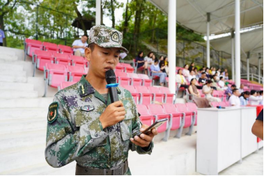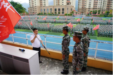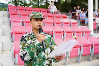 军训教官代表赵世杰在表态发言中表示,同学们要学习军人的担当精神,牢记“请党放心,强国有我”的使命;要全身心投入,服从教官,听从指挥,不怕苦累,克服困难,上好第一课,为今后的学习和生活打下坚实的基础。同时,教官在军训过程中要以饱满的热情对待同学们,认真备好每一堂军训课,发扬部队优良传统。