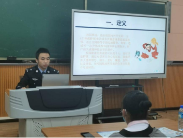 随后,由贵定县公安局刑侦大队侦查员宋洲府以“愿天下无诈校园行动”为题,从电信诈骗的概念、对骗术的解密、防范诈骗有哪些方法等方面与同学们进行分享。