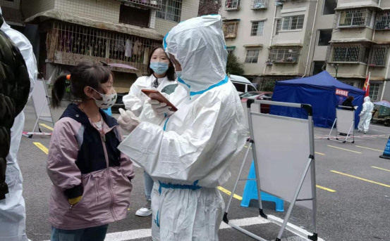 2019级高职26班王丽同学在遵义市红花岗区大兴路社区进行采集核酸登记