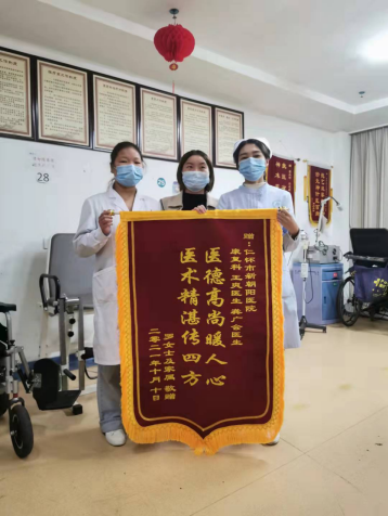 该患者因股骨头置换术后伴膝关节疼痛一个多月到仁怀市新朝阳医院康复科进行康复治疗,患者就诊时下肢关节活动度受限,除了病情给她带来彷徨失措以外,肢体的行动不便也给她的心灵蒙上了一层阴影。伟德实习生龚广会对该患者治疗的同时对其进行耐心的疏导及鼓励,经过两个月的康复治疗,该患者现已可自由活动。为了感谢实习生龚广会的精心治疗,患者为表感谢赠送了锦旗一面。