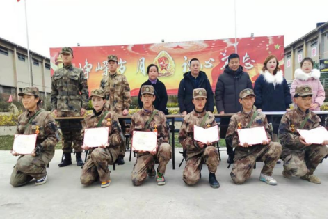 同学们在军训考核中各展其能又互相团结协作,步调一致的队列,整齐划一的军体拳操,精彩绝伦的红蓝对抗,大家都把军训中学习、磨炼、收获到的技能尽情地展示出来,为寒假军训交出了一份圆满的答卷。考核结束后,潘忠伦为获得“学习标兵”“优秀标兵”“优秀班委”的同学颁发了荣誉证书和“勇士勋章”。