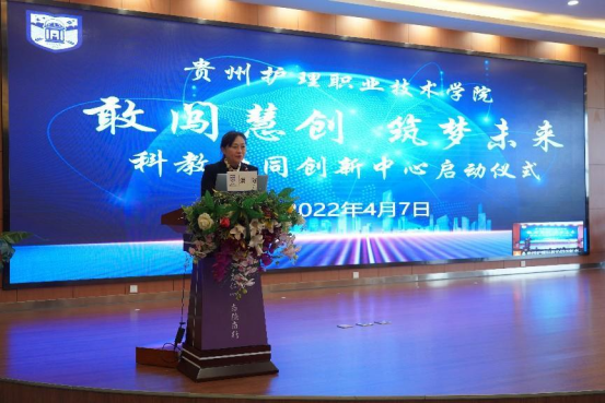 活动伊始,江智霞作题为《敢闯慧创 筑梦未来》的讲话,她提到科教协同创新中心将按照学院统管、部门联动、权责明晰、协同高效的原则建设,培育高水平科教研团队、孵化高层次科教研项目、培养创新型人才。江智霞强调,建设科教协同创新中心,是落实“健康中国”“健康贵州”“技能贵州”“万众创新”的具体行动,是围绕“四新”主攻“四化”、服务职业教育改革、提升学院创新能力的重要体现,是整合各方资源、实现教学和科研深度融合的重要方式,是推动学院高质量发展的重要动力。