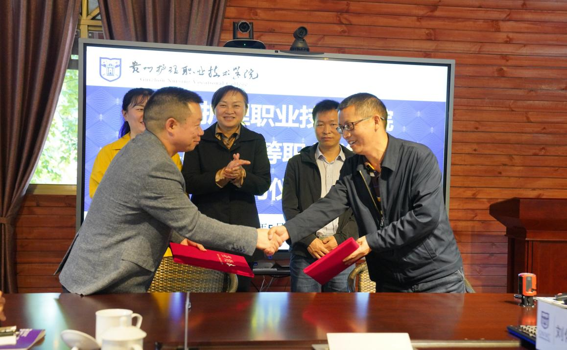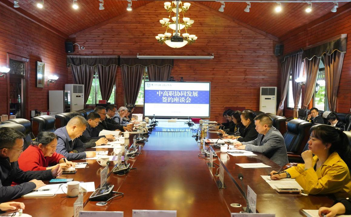 随后在天使阁会议室召开签约仪式暨座谈会。潘忠伦表示,本次会议的主要目的是学习贯彻中共贵州省第十三次党代会精神、新国发2号文件、《职业教育法》,以及“技能贵州”“健康贵州”建设等有关决策部署和要求,签署中高职协同发展合作协议,共同商讨推进中高职招生就业、专业建设、师资建设、社会服务和学校治理五大协同高质量发展。