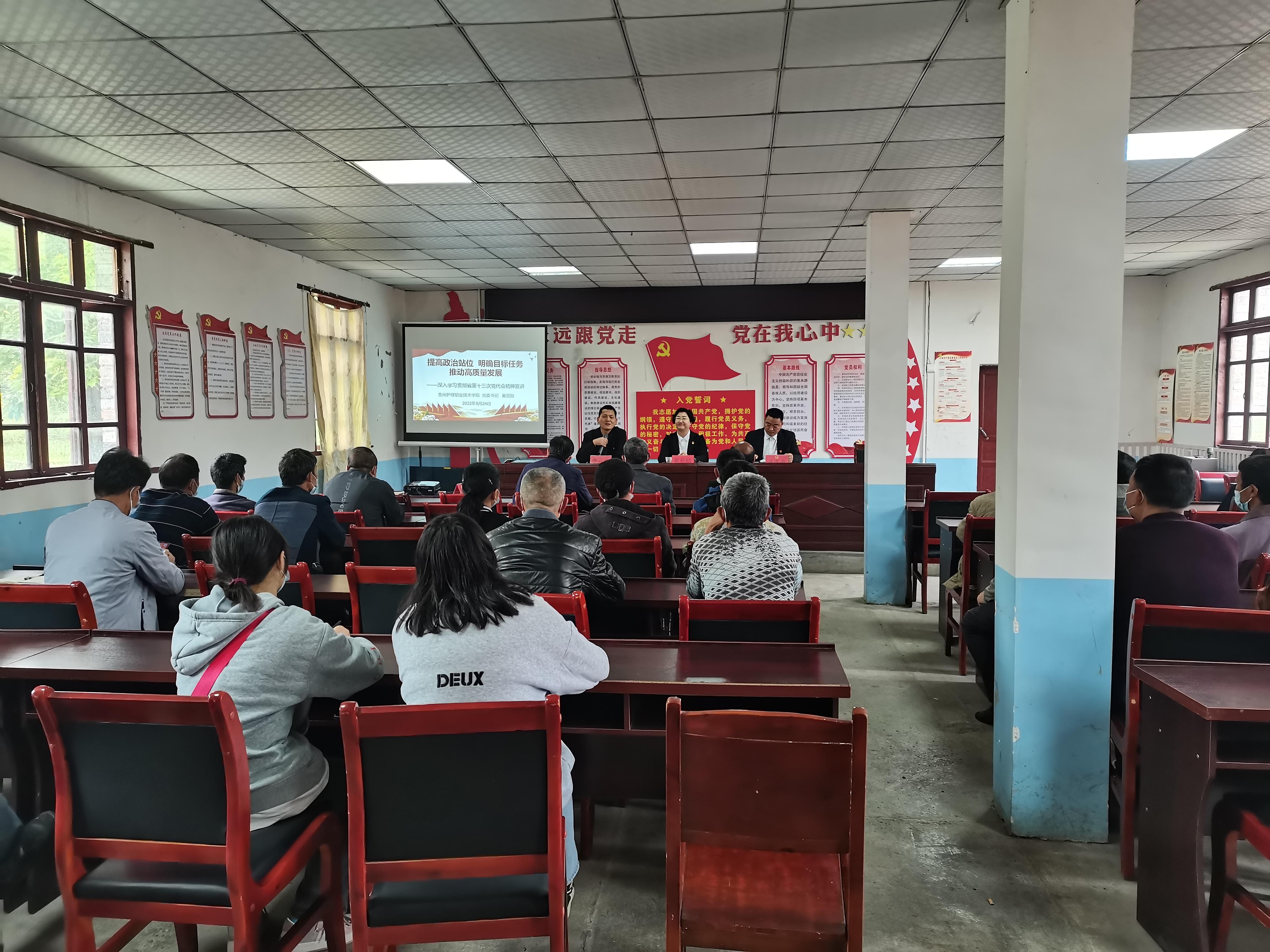 5月24日上午,学院党委书记黄亚励到学院乡村振兴驻帮村龙里县洗马镇龙场村和哪嗙社区,分别对两个村(社区)两委干部、驻村(社区)工作队员和基层党员宣讲贵州省第十三次党代会精神。